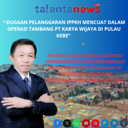 Dugaan Pelanggaran IPPKH Mencuat dalam Operasi Tambang PT KW di Pulau Gebe, Hendra:Pidana Mengintai Mereka
