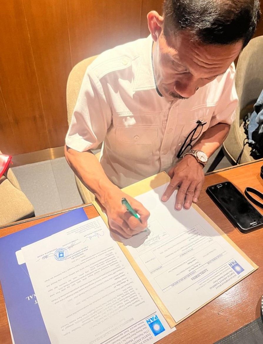 Tepat pukul 15:00 WIB, bertempat di Kantor DPP PAN , Sahril Tahir melakukan proses penandatanganan surat tanda terima rekomendasi, Senin, (08/07/24).