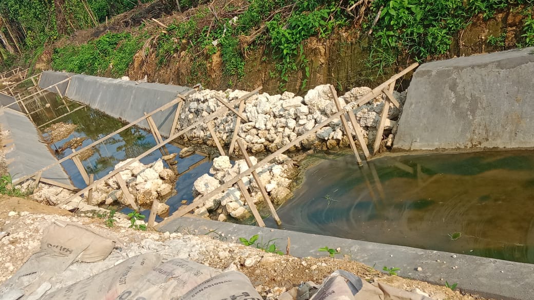 Berdasarkan informasi yang dihimpun Talentanews.com, indikasi penyimpangan paling mencolok terlihat pada pekerjaan pasangan batu. Batu-batu yang seharusnya disusun menggunakan campuran semen dan pasir (spesi) sebagaimana standar konstruksi, justru hanya disusun begitu saja, kemudian semen dilempar dari atas dan langsung diplester, tanpa ikatan kuat antar batu.