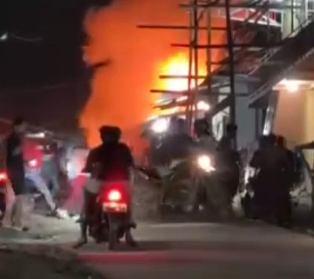Weda,Talentanews.com- – Kebakaran besar melanda kawasan KM I tanjakan Dua Jari, Desa Lelilef Waibulan, Kecamatan Weda Tengah, Kabupaten Halmahera Tengah, pada Minggu malam, 13 Juli 2025, sekitar pukul 22.30 WIT. Peristiwa ini menyebabkan dua bangunan kos semi permanen, dua kios, serta empat unit sepeda motor ludes terbakar. Kerugian ditaksir mencapai sekitar Rp1,5 miliar.