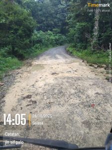 Kini, kondisi jalan yang baru dikerjakan itu telah menunjukkan kerusakan di berbagai titik. Aspal mengelupas, badan jalan retak, dan sebagian ruas mulai rusak berat.