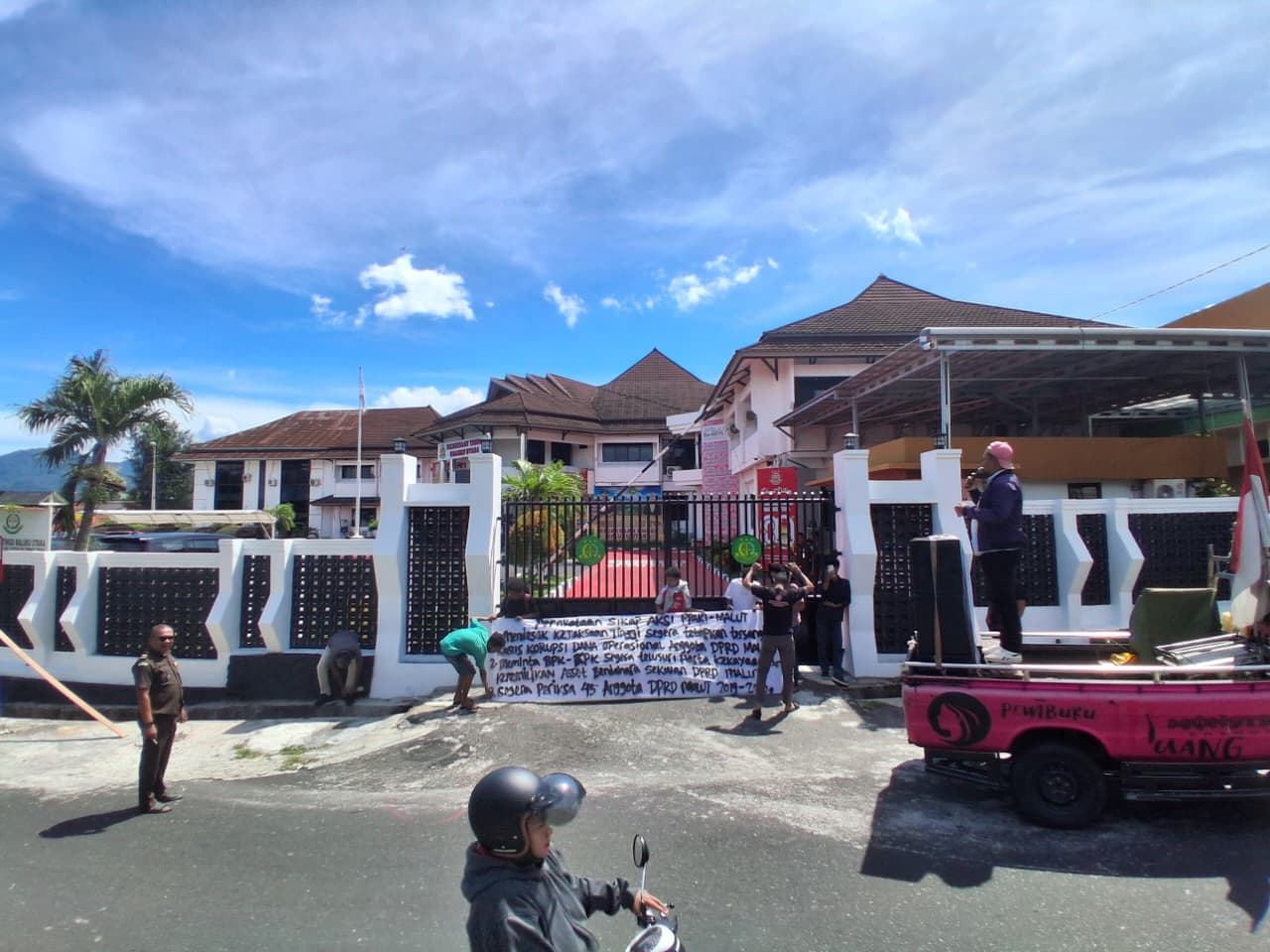 Aksi ini merupakan merespon atas dugaan praktik korupsi proyek jalan sif-palo senilai Rp, 11,4 miliar, proyek jalan hotmix di wilayah 1 Desa Wairoro indah kecamatan Weda selatan, Halmahera Tengah. Senilai Rp , 13.872.000.000 hingga temuan hasil audit BPK perjalanan dinas fiktif 9 SKPD di lingkup pemkab Halmahera Tengah.